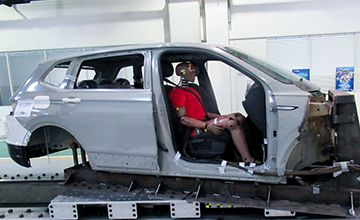 滑臺碰撞室成立于2008年,承擔著法規(guī)強檢、出口認證、約束系統(tǒng)匹配、C-NCAP鞭打試驗、整車兒童乘員保護試驗等多項工作。試驗室總長135米,寬24米,占地3200余平米,擁有兩臺三菱重工加速式模擬碰撞臺車,截至2021年底共完成各類臺車碰撞試驗28000余次。